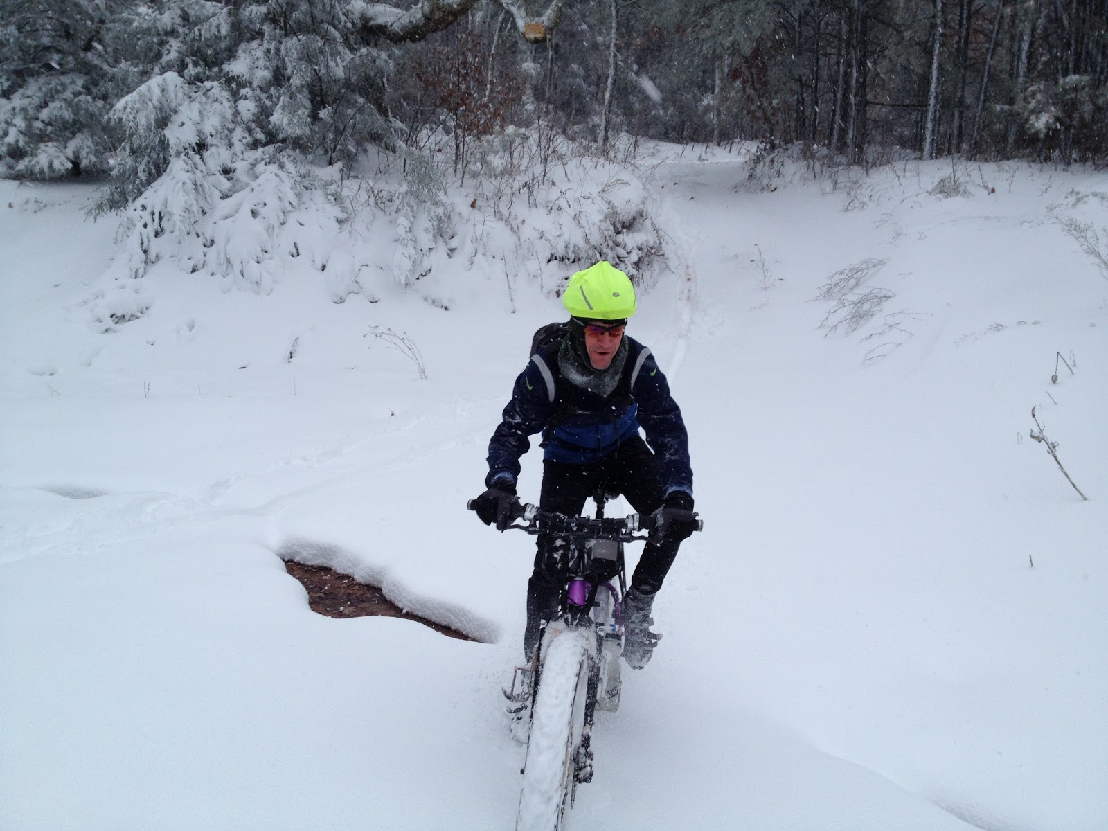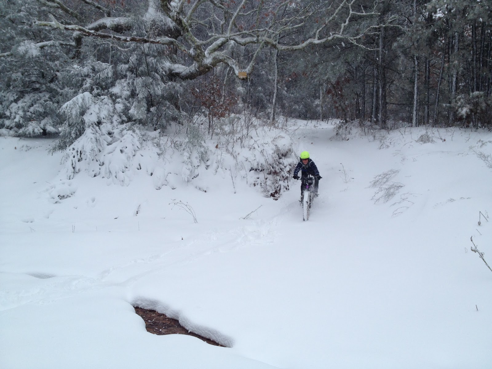Riding downhill in the snow was so much fun.  I found riding in the middle of road, not in the tire tracks, was amazing.  Of course when I tried to turn too quick I found myself instantly on the ground.